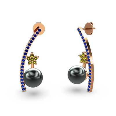 Siyah inci, lab safir ve peridot 8 ayar rose altın küpe