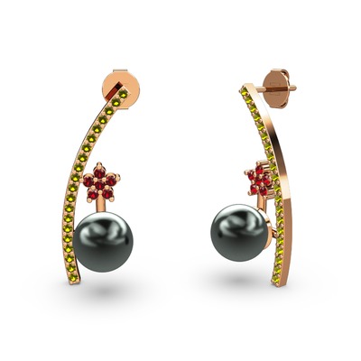 Siyah inci, peridot ve garnet 18 ayar rose altın küpe