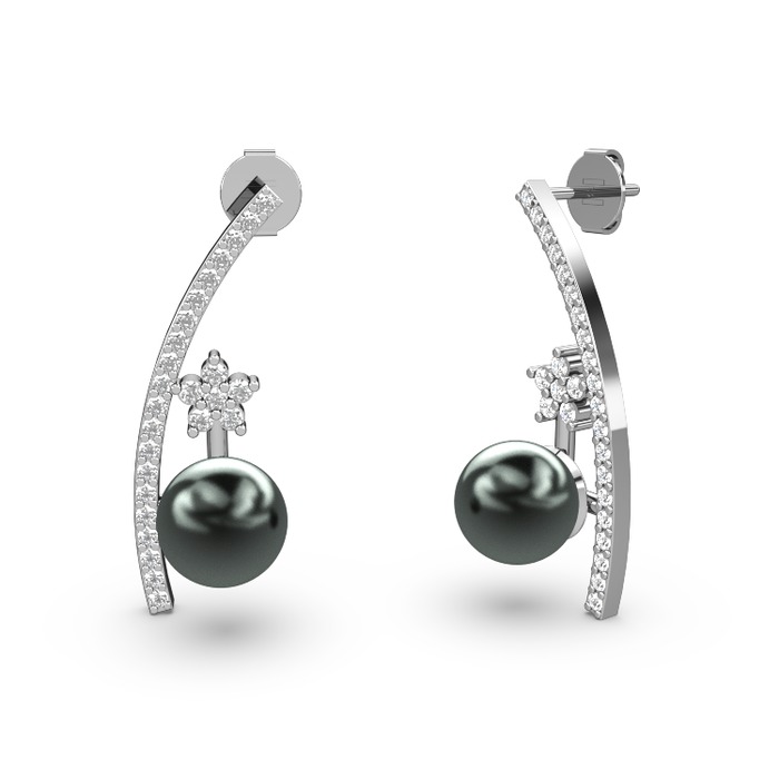 Siyah inci ve pırlanta 18 ayar beyaz altın küpe (0.62 karat)