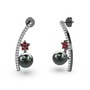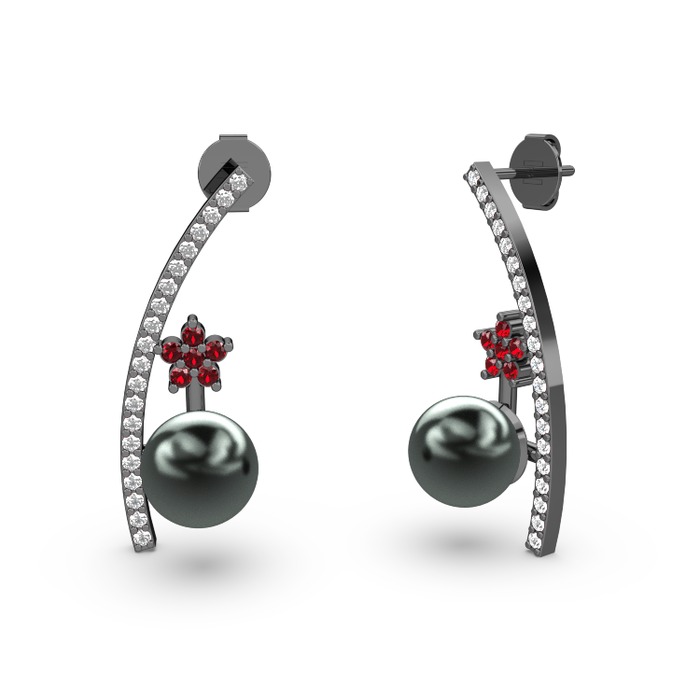 Siyah inci, pırlanta ve garnet 925 ayar siyah rodyum kaplama gümüş küpe (0.18 karat)