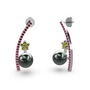 Siyah inci, rodolit garnet ve peridot 14 ayar beyaz altın küpe