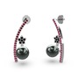 Siyah inci, rodolit garnet ve siyah zirkon 18 ayar beyaz altın küpe