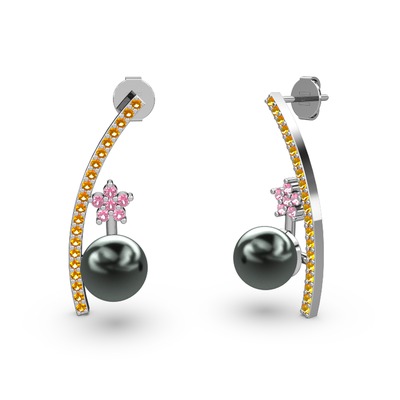 Siyah inci, sitrin ve pembe kuvars 925 ayar gümüş küpe