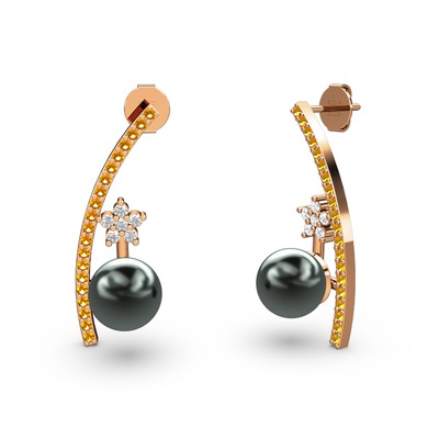 Siyah inci, sitrin ve swarovski 18 ayar rose altın küpe
