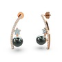 Siyah inci, swarovski ve akuamarin 925 ayar rose altın kaplama gümüş küpe