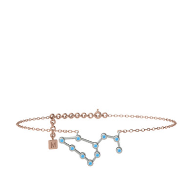 Akuamarin 14 ayar beyaz altın bilezik (20 cm rose altın rolo zincir)