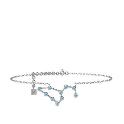 Akuamarin 8 ayar beyaz altın bilezik (20 cm gümüş rolo zincir)