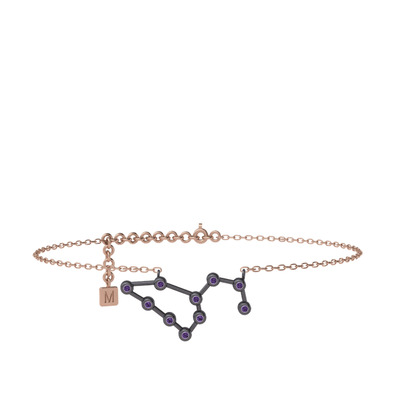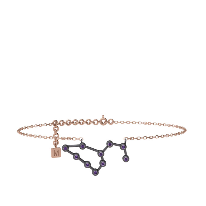 Ametist 925 ayar siyah rodyum kaplama gümüş bilezik (20 cm rose altın rolo zincir)