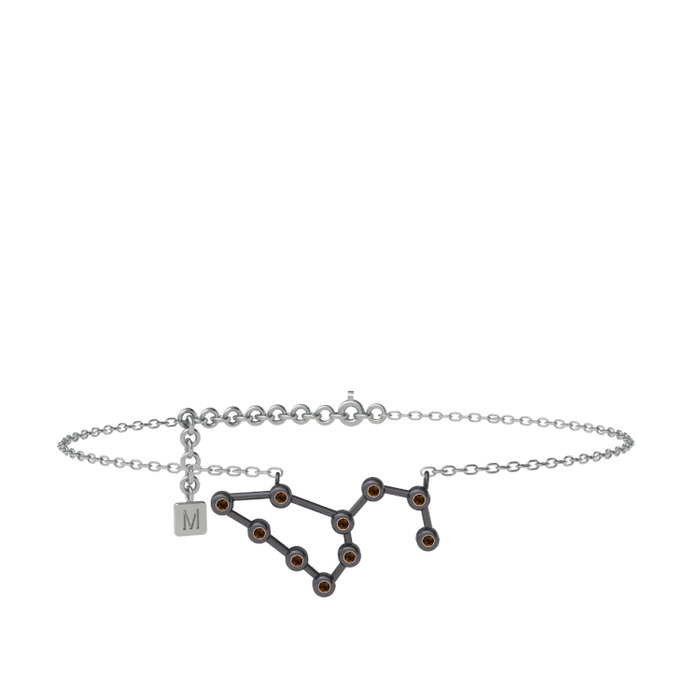 Dumanlı kuvars 925 ayar siyah rodyum kaplama gümüş bilezik (20 cm beyaz altın rolo zincir)