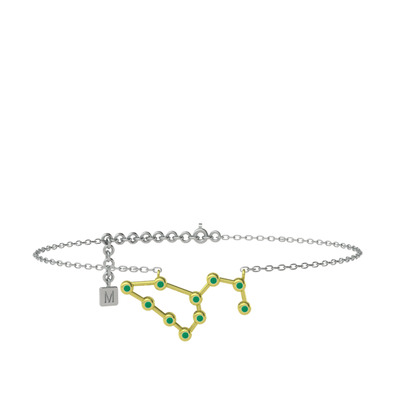 Kök zümrüt 925 ayar altın kaplama gümüş bilezik (20 cm beyaz altın rolo zincir)