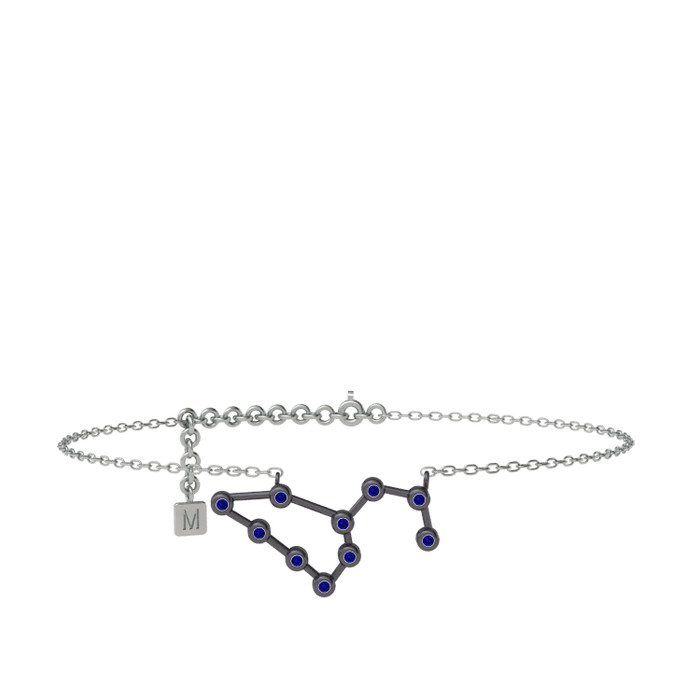 Lab safir 925 ayar siyah rodyum kaplama gümüş bilezik (20 cm beyaz altın rolo zincir)