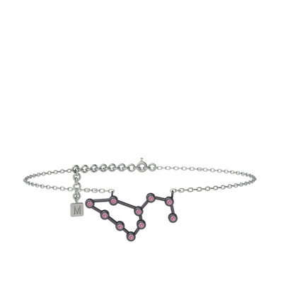 Pembe kuvars 925 ayar siyah rodyum kaplama gümüş bilezik (20 cm gümüş rolo zincir)