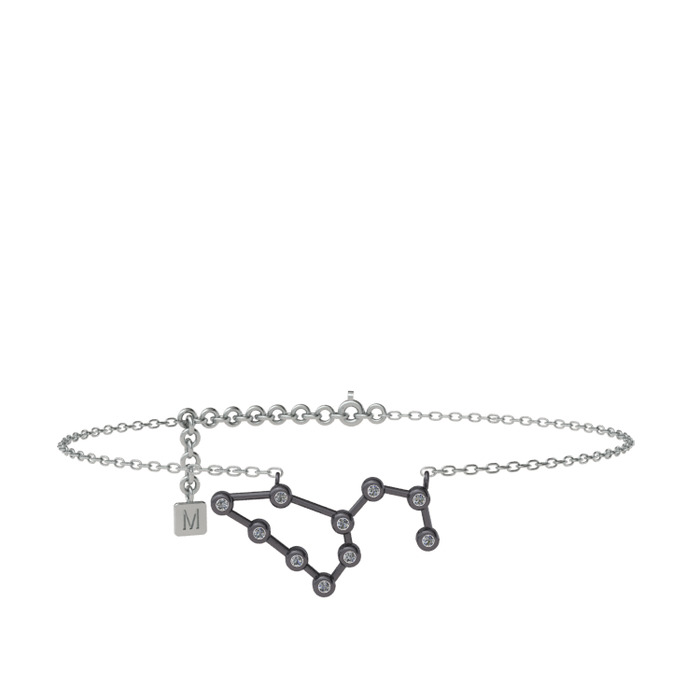 Pırlanta 925 ayar siyah rodyum kaplama gümüş bilezik (0.11 karat, 20 cm beyaz altın rolo zincir)