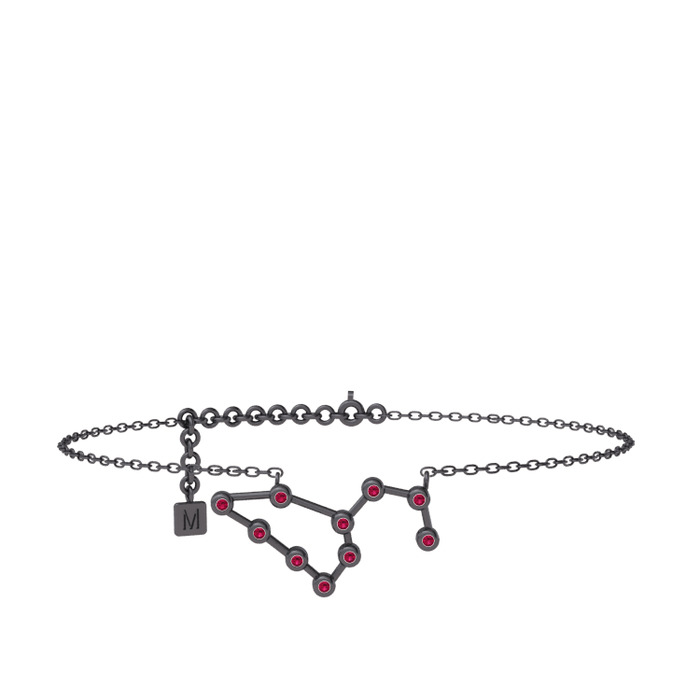 Rodolit garnet 925 ayar siyah rodyum kaplama gümüş bilezik (20 cm gümüş rolo zincir)