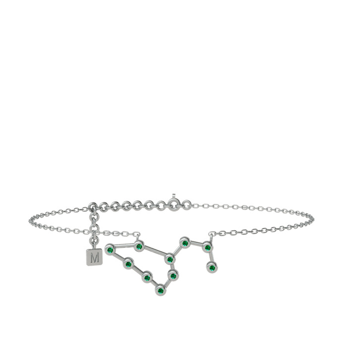 Yeşil kuvars 14 ayar beyaz altın bilezik (20 cm beyaz altın rolo zincir)