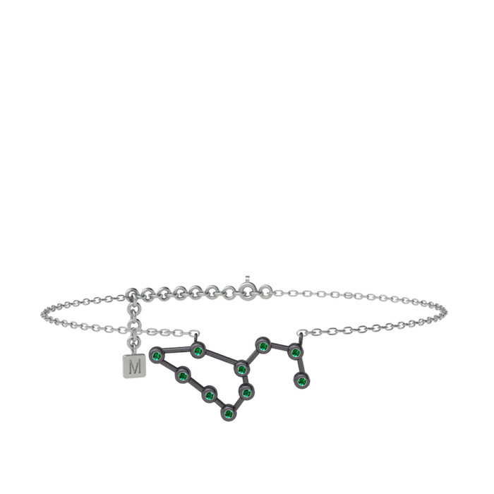 Yeşil kuvars 925 ayar siyah rodyum kaplama gümüş bilezik (20 cm beyaz altın rolo zincir)