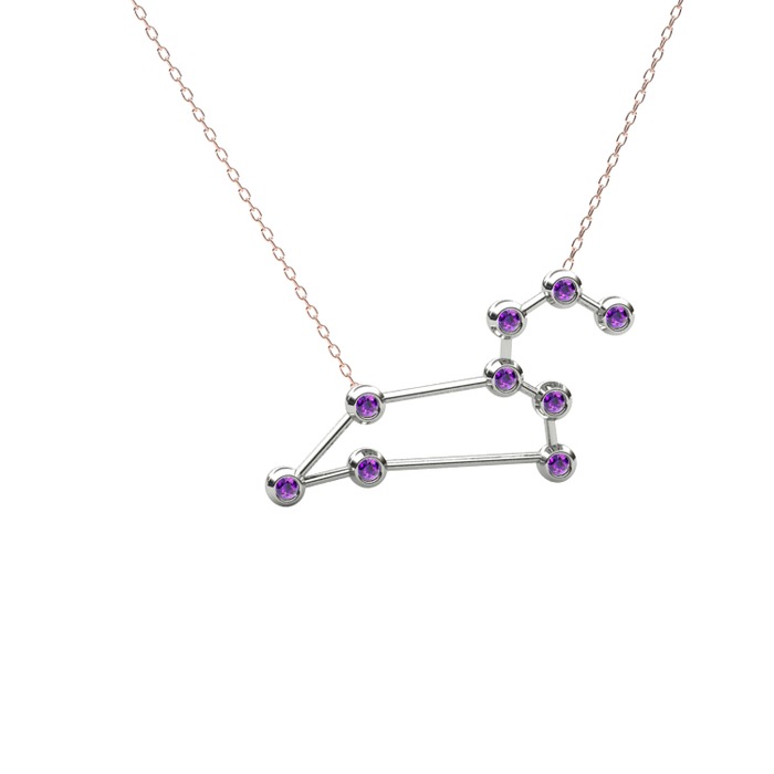 Ametist 8 ayar beyaz altın kolye (40 cm rose altın rolo zincir)