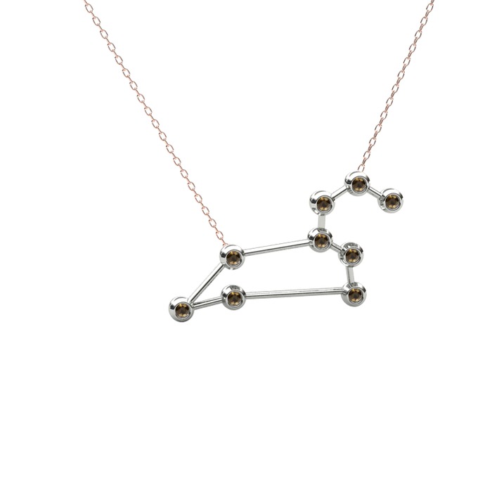 Dumanlı kuvars 14 ayar beyaz altın kolye (40 cm rose altın rolo zincir)