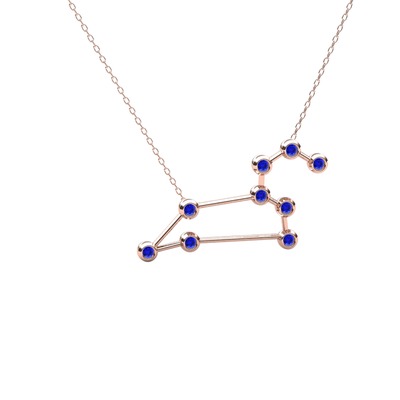 Lab safir 8 ayar rose altın kolye (40 cm rose altın rolo zincir)