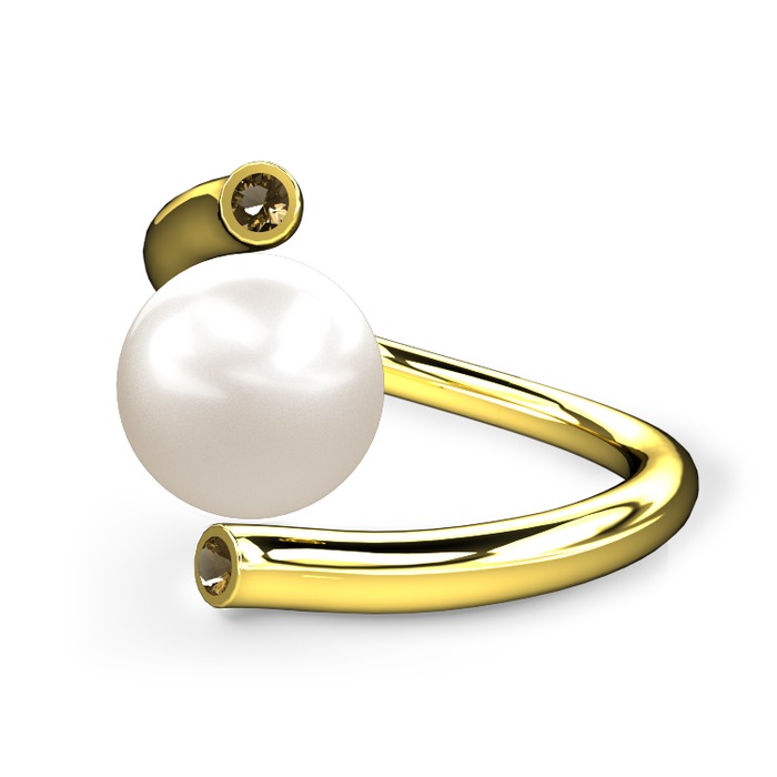 Inci ve dumanlı kuvars 18 ayar altın yüzük