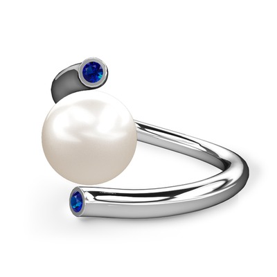 Inci ve lab safir 18 ayar beyaz altın yüzük