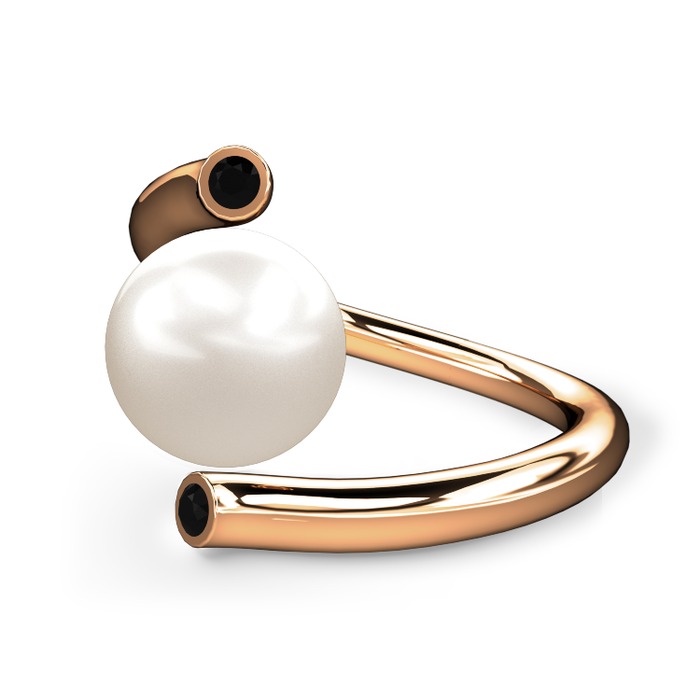 Inci ve siyah zirkon 14 ayar rose altın yüzük