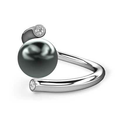 Siyah inci ve beyaz zirkon 14 ayar beyaz altın yüzük