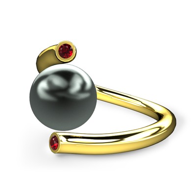 Siyah inci ve garnet 925 ayar altın kaplama gümüş yüzük