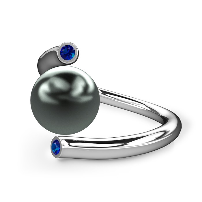 Siyah inci ve lab safir 8 ayar beyaz altın yüzük