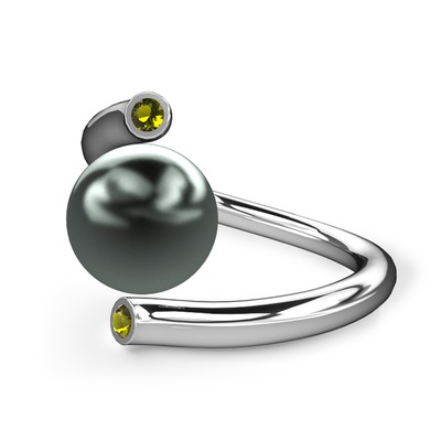 Siyah inci ve peridot 925 ayar gümüş yüzük
