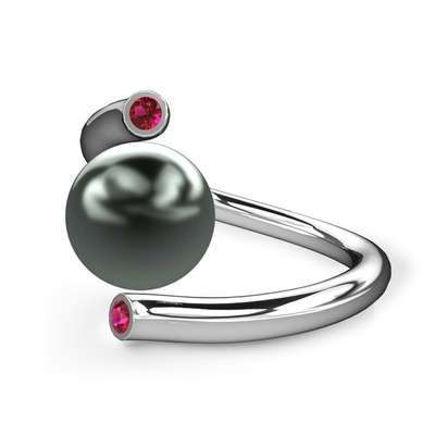 Siyah inci ve rodolit garnet 925 ayar gümüş yüzük