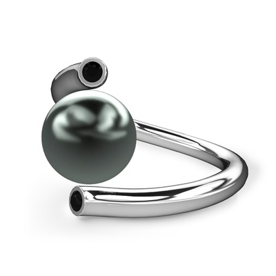 Siyah inci ve siyah zirkon 14 ayar beyaz altın yüzük