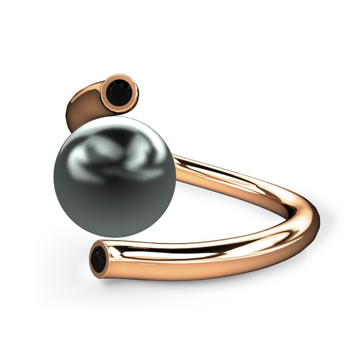 Siyah inci ve siyah zirkon 925 ayar rose altın kaplama gümüş yüzük