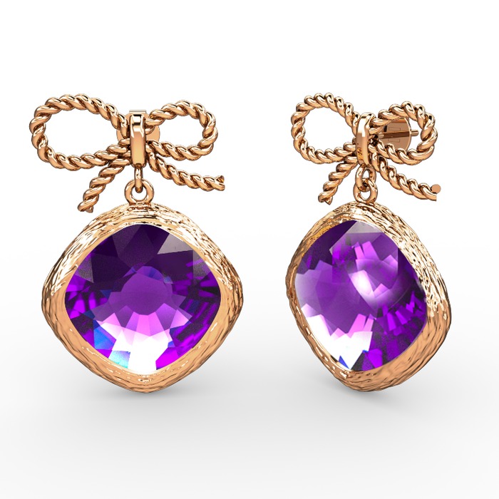 Ametist 925 ayar rose altın kaplama gümüş küpe