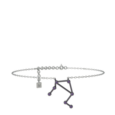 Ametist 925 ayar siyah rodyum kaplama gümüş bilezik (20 cm gümüş rolo zincir)