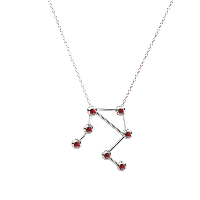Libra Kolye - Garnet 925 ayar gümüş kolye (40 cm rose altın rolo zincir)
