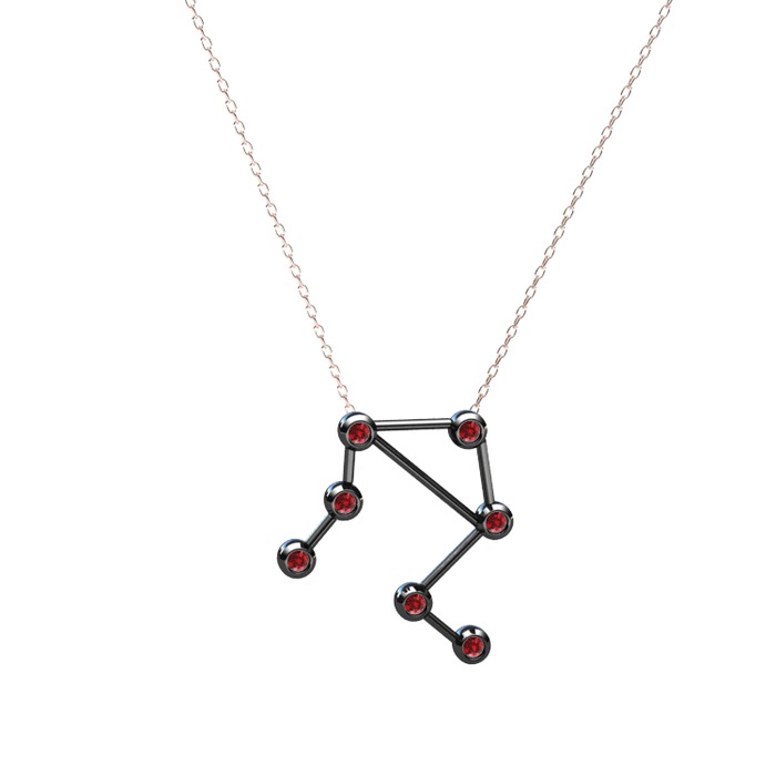 Garnet 925 ayar siyah rodyum kaplama gümüş kolye (40 cm rose altın rolo zincir)