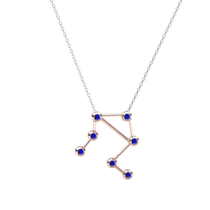 Lab safir 14 ayar rose altın kolye (40 cm gümüş rolo zincir)