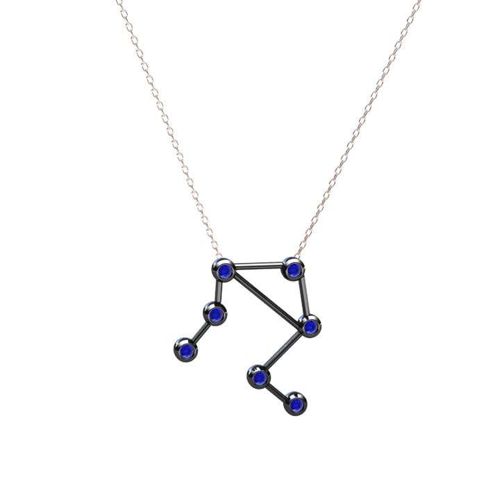 Libra Kolye - Lab safir 925 ayar siyah rodyum kaplama gümüş kolye (40 cm rose altın rolo zincir)