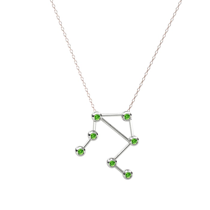 Peridot 18 ayar beyaz altın kolye (40 cm rose altın rolo zincir)