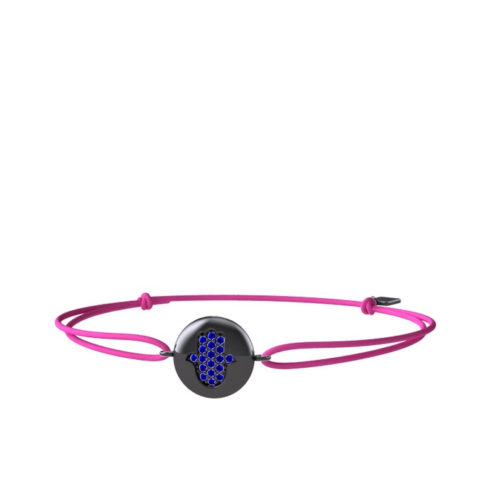 Lida Hamsa Bileklik - Lab safir 925 ayar siyah rodyum kaplama gümüş bileklik