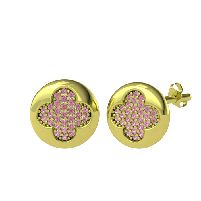 Pembe kuvars 14 ayar altın küpe