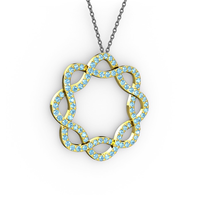 Akuamarin 14 ayar altın kolye (40 cm gümüş rolo zincir)