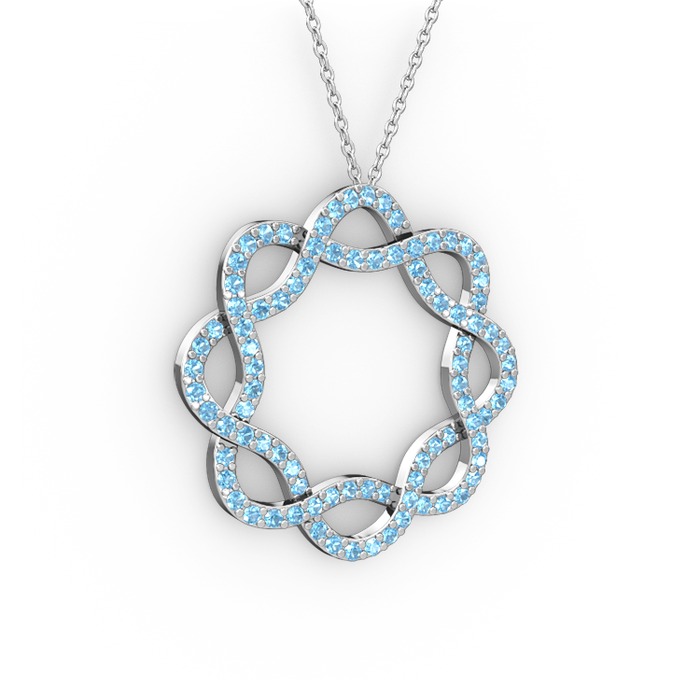 Akuamarin 18 ayar beyaz altın kolye (40 cm beyaz altın rolo zincir)