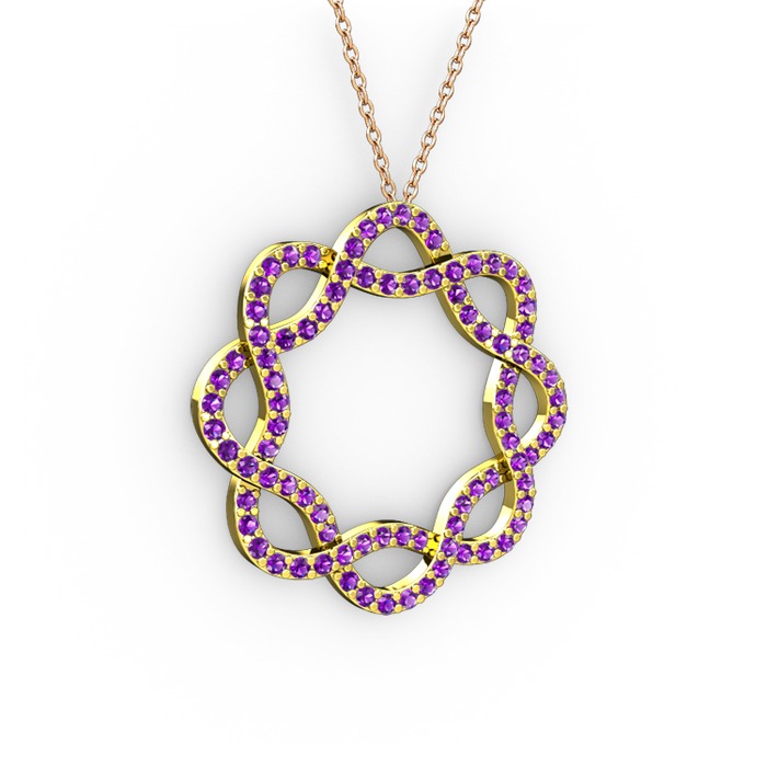 Ametist 18 ayar altın kolye (40 cm gümüş rolo zincir)