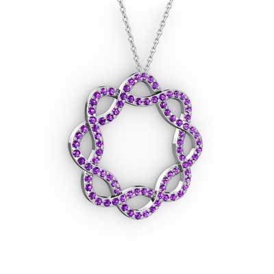 Ametist 18 ayar beyaz altın kolye (40 cm beyaz altın rolo zincir)