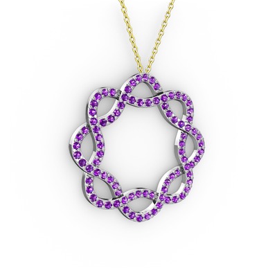 Ametist 8 ayar beyaz altın kolye (40 cm gümüş rolo zincir)