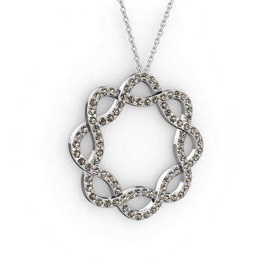 Dumanlı kuvars 18 ayar beyaz altın kolye (40 cm beyaz altın rolo zincir)