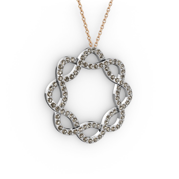 Dumanlı kuvars 8 ayar beyaz altın kolye (40 cm gümüş rolo zincir)