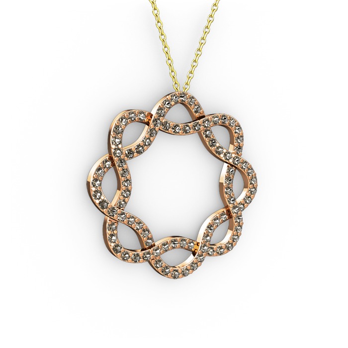 Dumanlı kuvars 925 ayar rose altın kaplama gümüş kolye (40 cm altın rolo zincir)